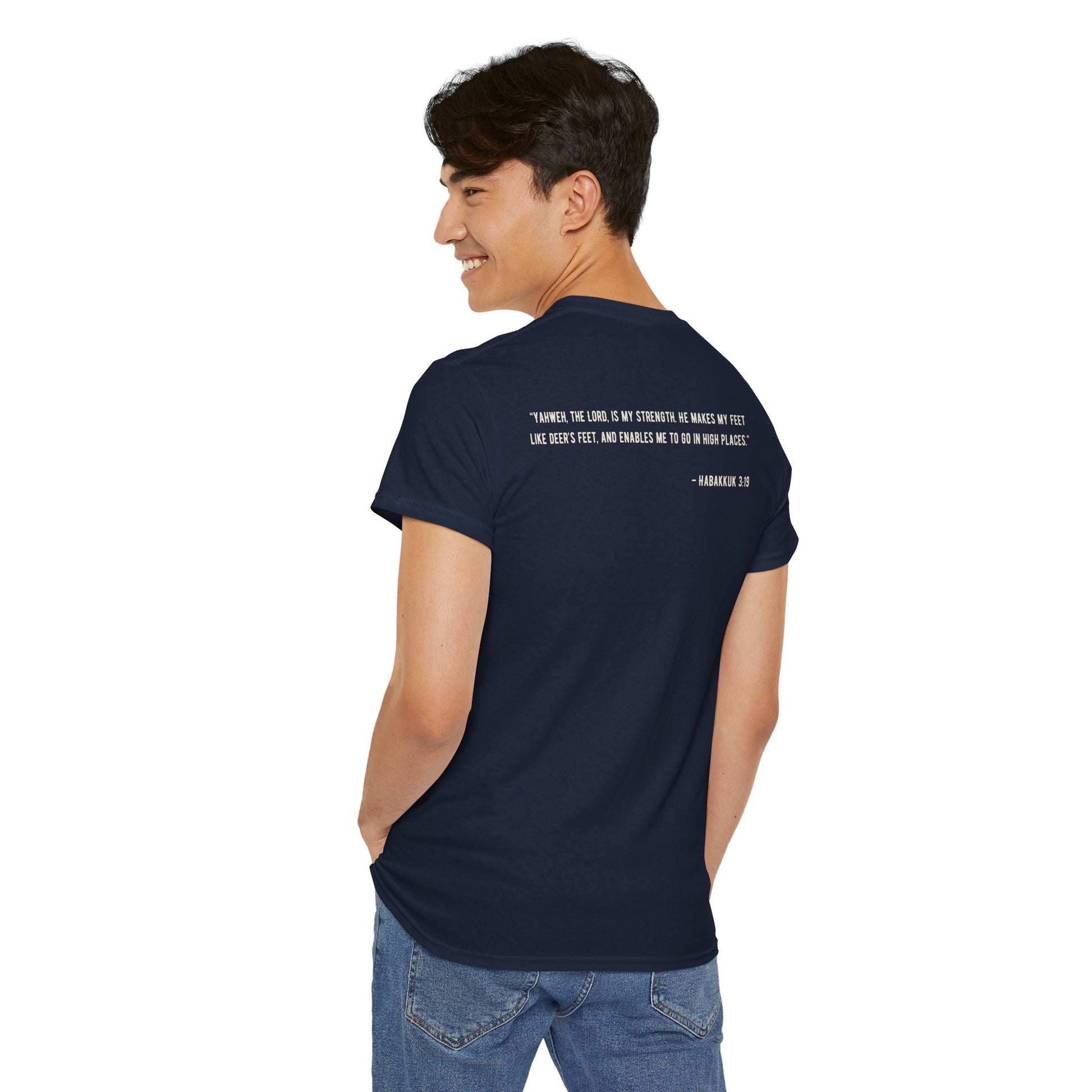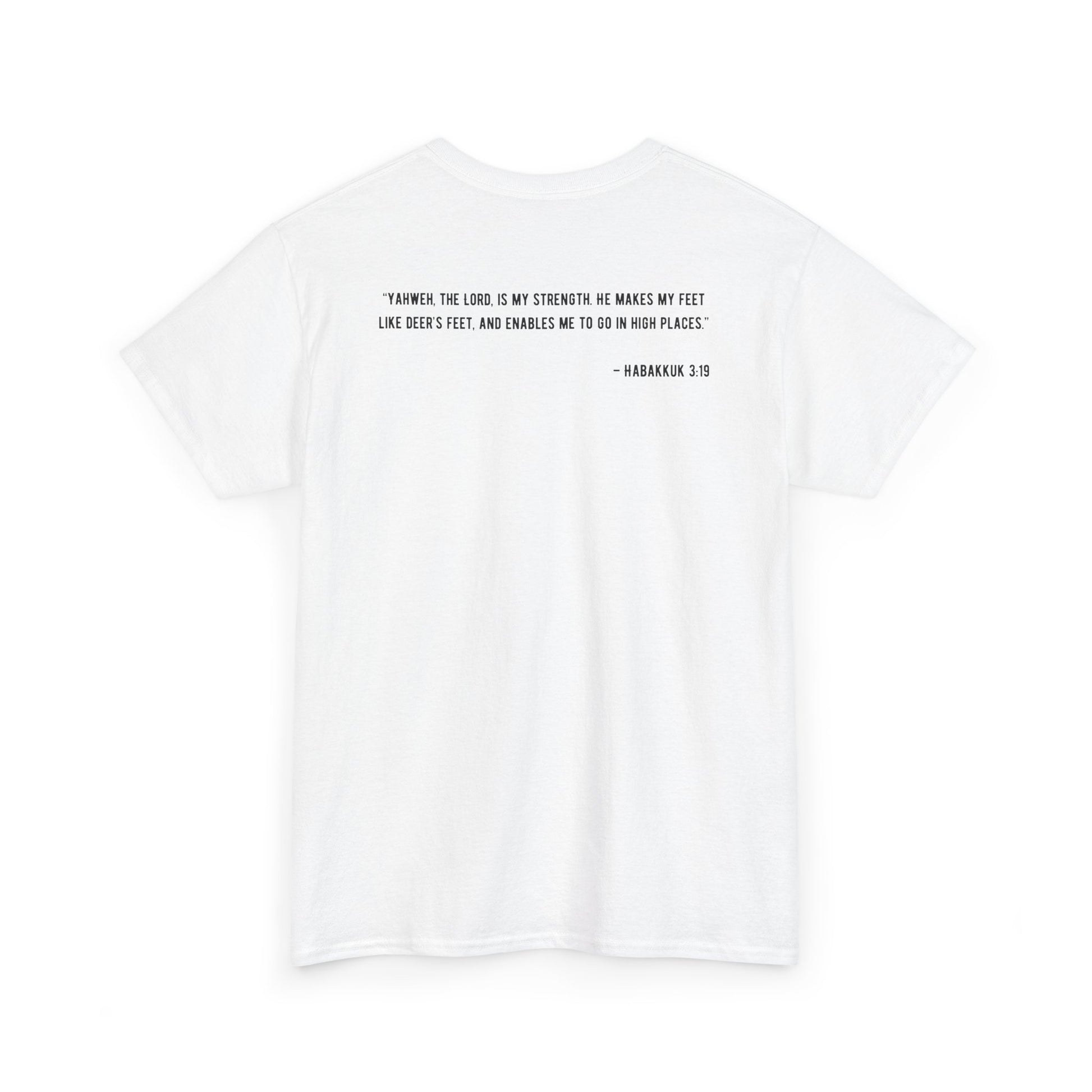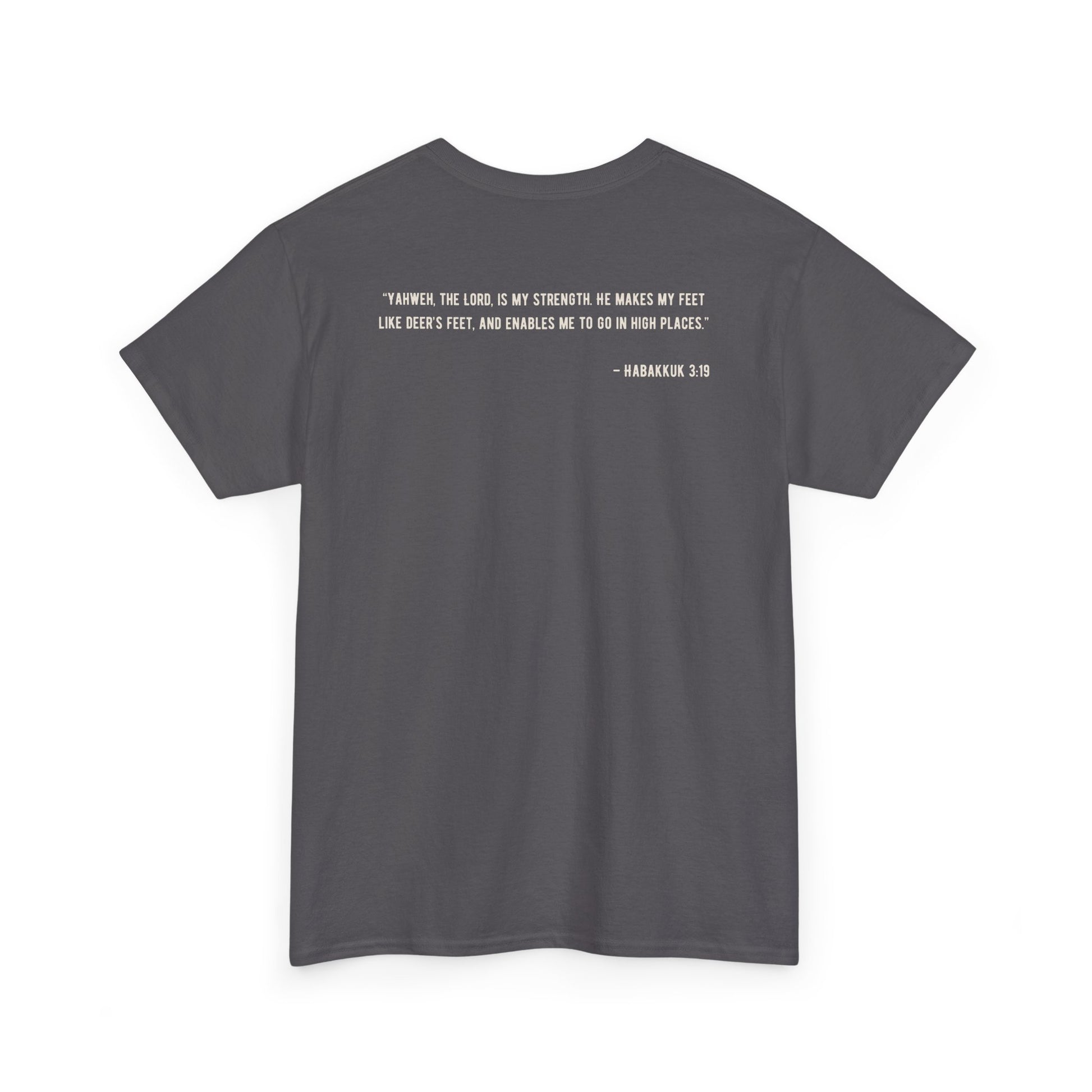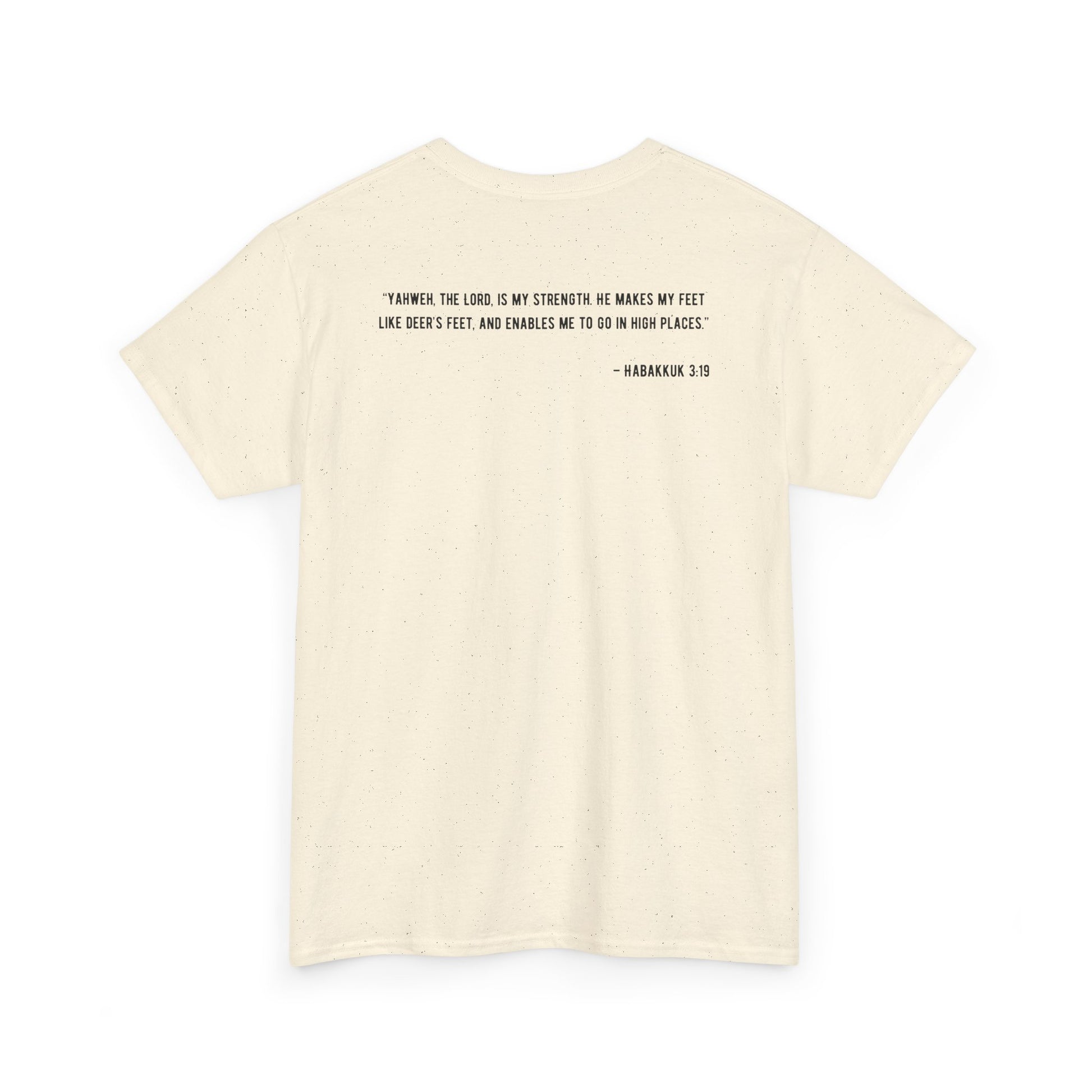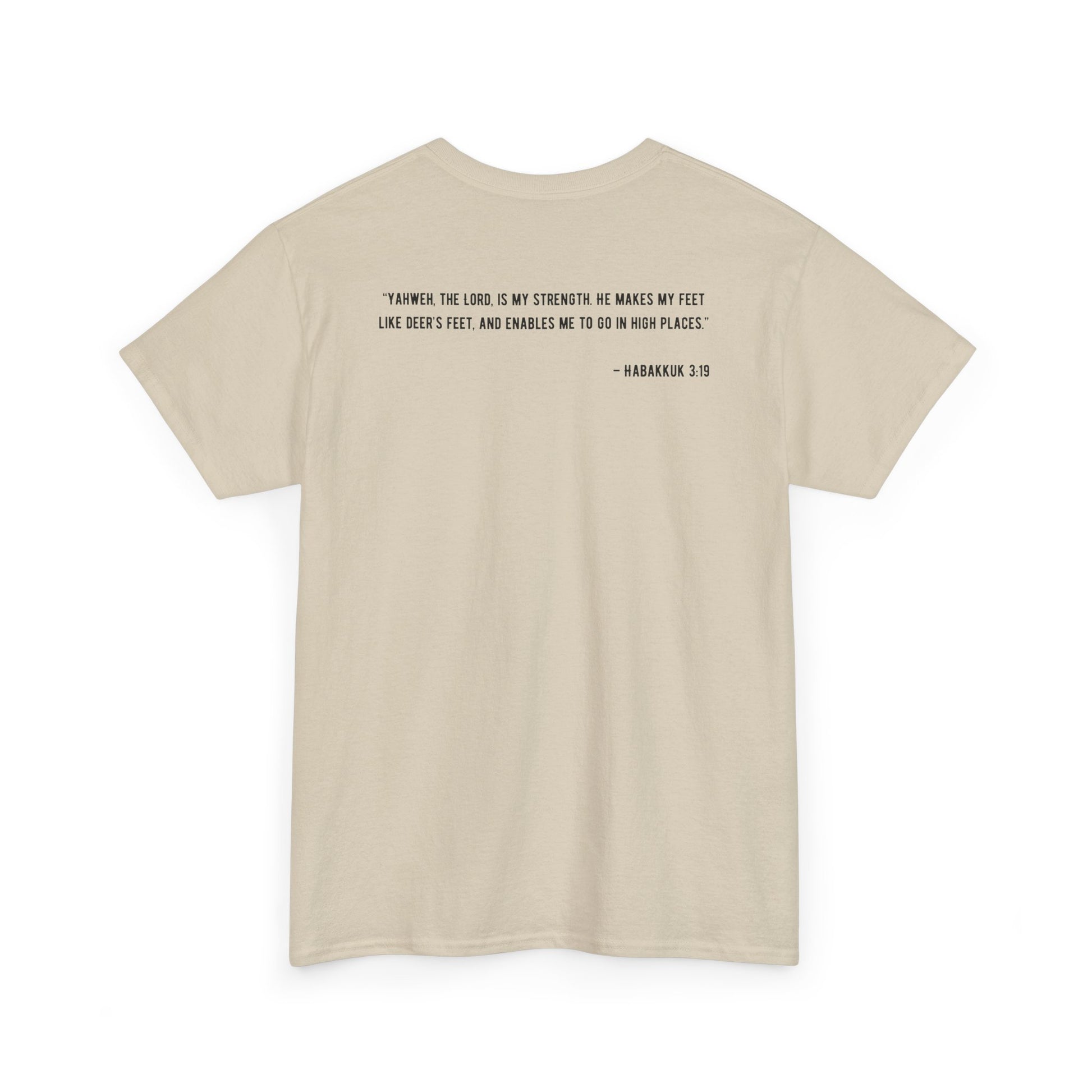 A comfortable and durable tee featuring the inspirational phrase 'God keeps me steady when life feels wobbly~ from Habakkuk 3:19'. Perfect for everyday wear and a great reminder of faith and resilience. Suitable for adults looking for a versatile shirt for casual or semi-formal occasions. Ideal for religious holidays and uplifting celebrations.